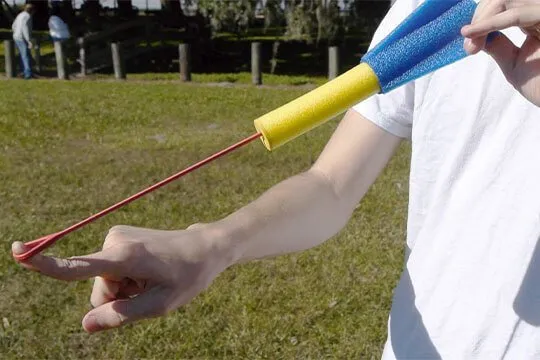 The Finger Rockets Mixed measure nine inches long and come with a stretchy band and three aerodynamic fins. Snap and launch them to see them soar across the yard, classroom, or gym. Add them to traditional group games like tag or dodgeball for a fun twist. Make sure to have at least one for everyone when the Finger Rocket battle begins.