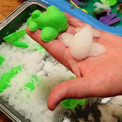 Snow in July? Yes please! With Snowy Yuck Slime all you do is add water and you have instant fluffy snow. When dry it feels like sugar crystals, and when hydrated it becomes slushy white snow that sparkles. It cannot be hard packed but can be scooped and played with. All Yuck Slime products are non toxic and eco friendly.
