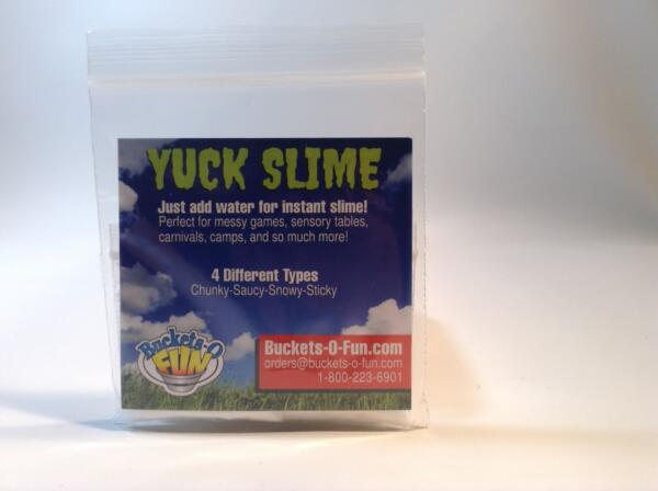 Yuck Slime is available in the following quantities: 3 oz., 1 lb., 5 lbs.,